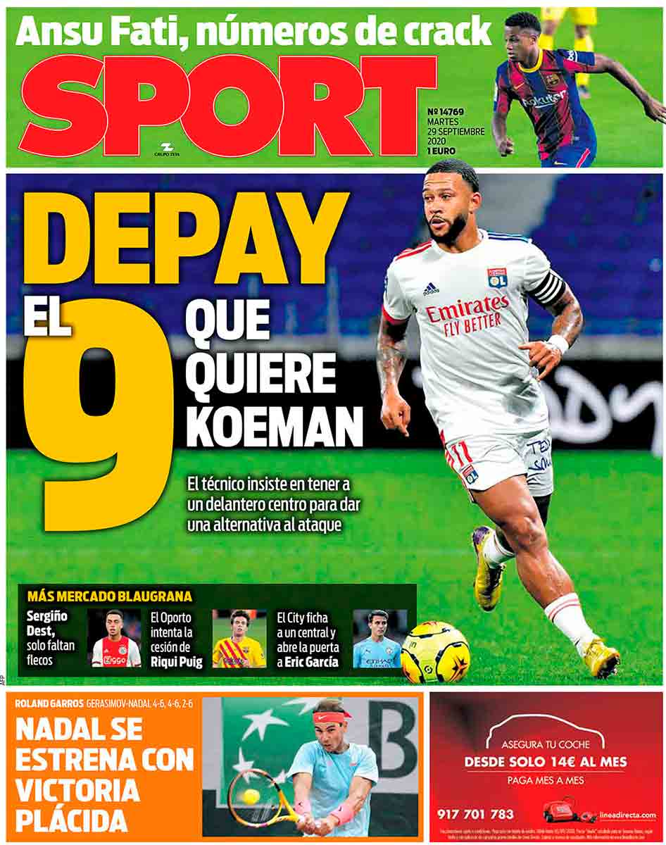 Buenos días, queridos galernautas. El diario Sport lleva en su portada lo que puede ser el próximo conflicto entre el Barça y la realidad. Informan que Koeman quiere un 9 Depay, es decir, de pago, pero dicho en inglés. Ya saben que en La Galerna somos polifónicos en materia de idiomas. Y esto es un problema, no que en La Galerna seamos multilingües, sino que el técnico culé pretenda fichar a un jugador que cuesta dinero, porque el club no tiene. Tal vez si pagasen en comunicados políticos sería más sencillo, pero no es el caso.
