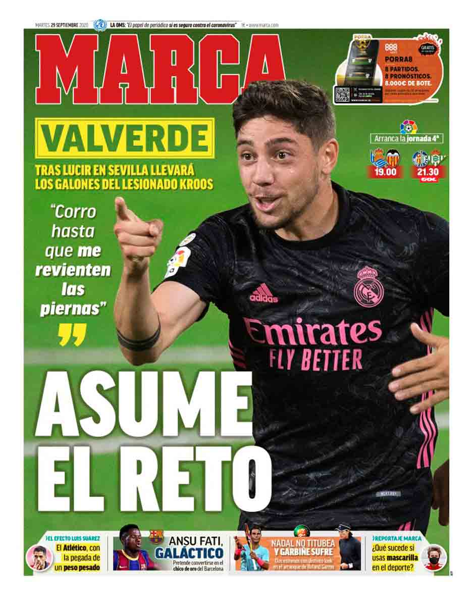 Marca nos trae una buena fotografía de Fede Valverde que refleja la misma ilusión en la cara que tiene puesto en madridismo en su futuro. El uruguayo afirma que corre hasta que le revientan las piernas, hecho demostrado. Mas no solo corre mucho, sino que corre bien, decide rápido y está adornado por un discurrir sensato. Parece que hubiera nacido aprendido. De lo que no estamos tan seguros es de que Marca acierte con su pronóstico de que el Pajarito llevará los galones del lesionado Kroos. Los caminos de Zidane son inescrutables.