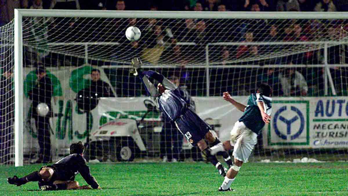 El año de la ‘Séptima’ Copa de Europa blanca, el Deportivo Alavés de Mané en pleno invierno causó sensación por su pase a cuartos de final dejando en la estacada al Real Madrid. Los vitorianos, que peleaban el liderato en Segunda con el Extremadura y que acabaron ascendiendo como campeones de la categoría, eran un equipo muy sólido y conjuntado. En sus filas aunaban la experiencia en Primera de hombres como Pedro Riesco, Albistegui, Pablo o Pedro Alberto con jóvenes con un gran futuro como Téllez o Javi Moreno. En Mendizorroza, el héroe fue Serrano que marcó el gol del triunfo ante un Real Madrid que alineó a Illgner, Savio, Redondo o Morientes con algunos menos habituales como Rojas, Fernando Sanz y Dani. En la vuelta, Pedro Riesco sorprendió en el 10’ y los tres goles que necesitaba el Real Madrid se quedaron en dos (Roberto Carlos y Suker) y por tanto insuficientes. La alegría vitoriana se desató con el pitido final y sobre el césped del coliseo blanco se quedaron celebrando su pase.