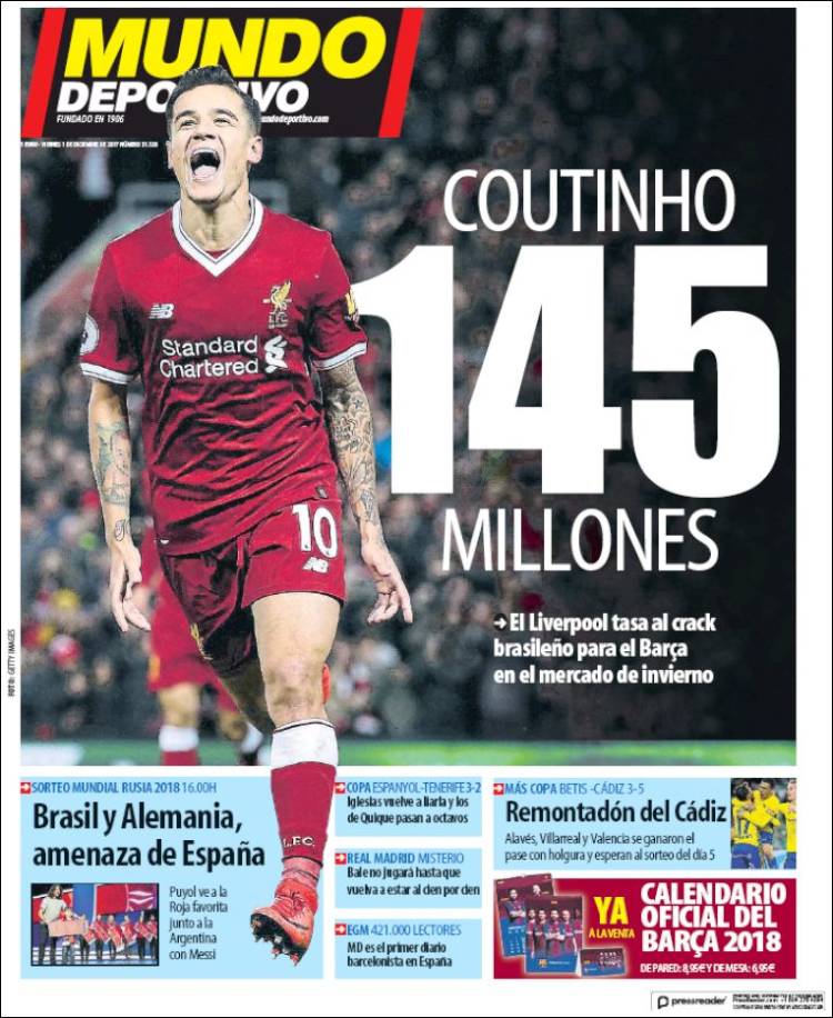 Y respecto al sorteo del Mundial de Rusia, dicen el As y el Marca que dice Lopetegui que el grupo de España será el más fuerte...