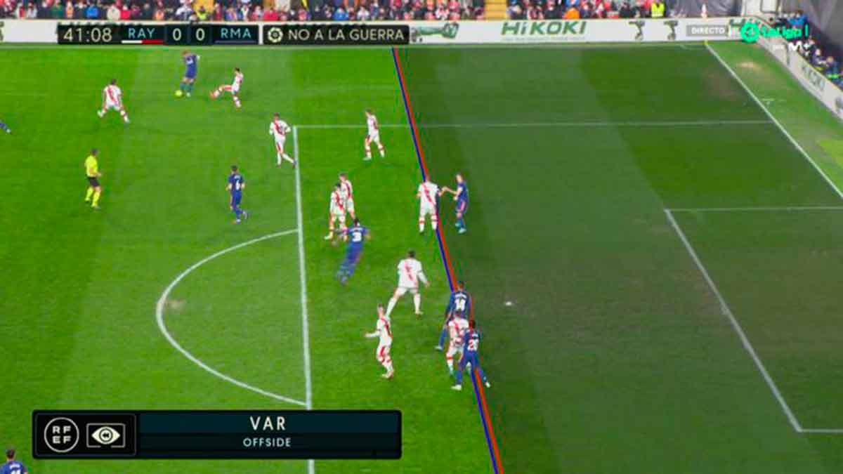 Comenzó el choque dejando jugar mucho. Diríamos que en demasía y se le revolucionó el gallinero. Trejo, por agarrar a Nacho, o Balliu, por un tortazo a Vinícius, debieron ver la amarilla, pero el único amonestado del primer acto fue Óscar Valentín por una entrada a Benzema en el 41'. Un minuto antes, se anuló por fuera de juego de Casemiro un gol merengue. Una posición muy justa, aunque sí parecía algo adelantado. Además, el brasileño tocó el balón con la mano antes de chutar y se podría haber invalidado también la acción por ese toque.