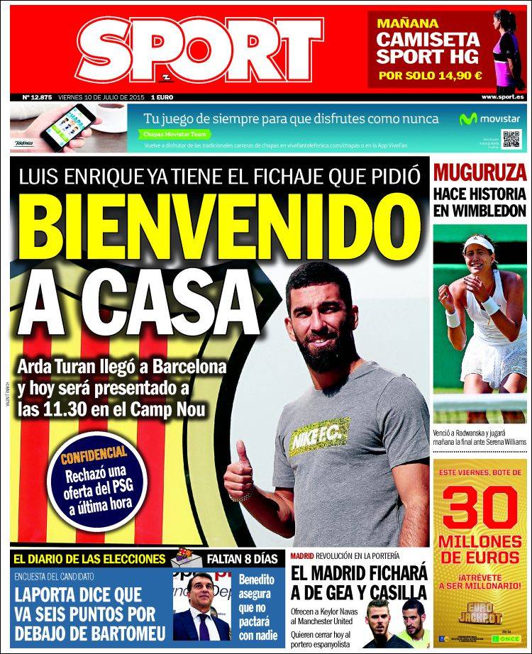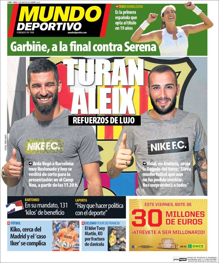 Una tragicomedia que se precie incluye algún elemento discordante, aparentemente independiente de la trama, que genera perplejidad y hace las cosas todavía más ingobernables. Ese elemento, en las portadas de hoy, es el tenis femenino, que ya As insinuaba y al que Marca, en un giro tan inesperado de los acontecimientos como los acontecimientos en sí, otorga casi todo el protagonismo. Se te pierde un niño en el parque del Retiro y, en tu deambular desesperado, se te acerca una cooperante de Acnur para pedirte que contribuyas. Si esas cosas pasan en la vida, no vemos por qué no van a pasar en las portadas, y no vemos por qué la cooperante no puede llamarse Garbiñe Muguruza, que es un nombre como cualquier otro, qué decimos, un nombre precioso además, literario o de serie de TV, como de ángel de Charlie euskaldun, ahora que lo pensamos.
