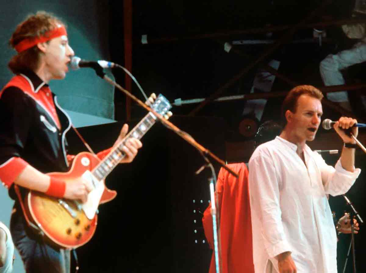 El equipo ya era diferente al de los primeros tiempos, se trataba de hacer una transición dulce, como en los grandes equipos de fútbol que poco a poco se van apagando. Aun así, en 1985, la banda logró su mayor éxito de ventas (que no de calidad), su Copa de Europa en definitiva, al publicar su 5º álbum “Brothers in Arms”, cuya portada, con una de las magníficas guitarras de colección de Knopfler sobre un fondo azul claro, es una de las más icónicas de la historia del rock. En dicho LP se encuentra la canción predilecta de este autor, So Far Away, además de la animadísima Walk of Life, un canto a la felicidad y a la vida, volviendo a los orígenes del grupo, un rock mezclado con sintetizador, o la propia canción que da título al álbum, una balada maravillosa con tintes nostálgicos, casi una despedida, una last dance en definitiva, que dejó el pabellón muy alto, como la 5ª liga consecutiva de la Quinta en 1990, un hito histórico que los madridistas disfrutamos, pero que intuíamos ya no se iba a repetir más. Como curiosidad, otro galáctico como Sting compuso a medias con Mark y participó en los coros de Money for Nothing, canción elegida como sencillo del LP, que supuso el mayor éxito y llegó a ser nº1 en Estados Unidos y en Reino Unido.