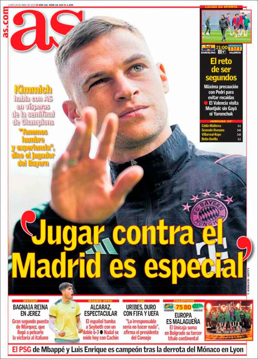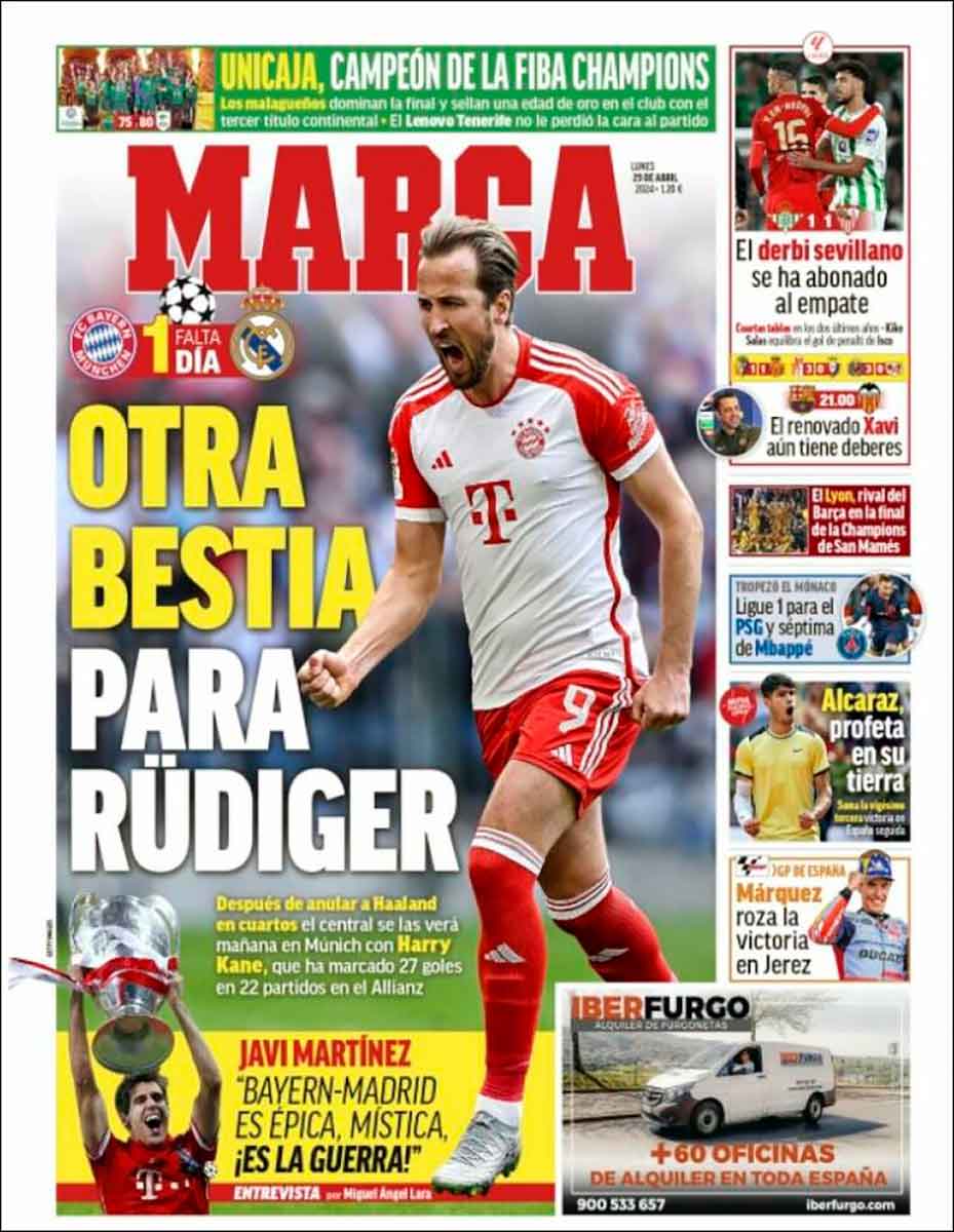 Pero el Bayern no sólo es historia. Tiene un técnico de absoluta élite como es Tuchel, a quien hace pocos días escuchamos describir la grandeza del Madrid con enorme tino: "Ves sus partidos en diferido. De pronto llega su gol. Pasas hacia atrás para detectar el peligro. No lo encuentras. A veces sí, pero en muchas ocasiones el gol del Madrid no se ve venir". Y tiene una plantilla descomunal, por mucho que este año el grandioso Leverkusen de Xabi Alonso les haya mojado la oreja en la Bundesliga que suelen ganar de calle. Nombres como Musiala, Neuer, Davies, Sané... Y, por supuesto, el hombre que Marca trae hoy en portada, un futbolista al que sólo cabe admirar desde cualquier punto de vista.