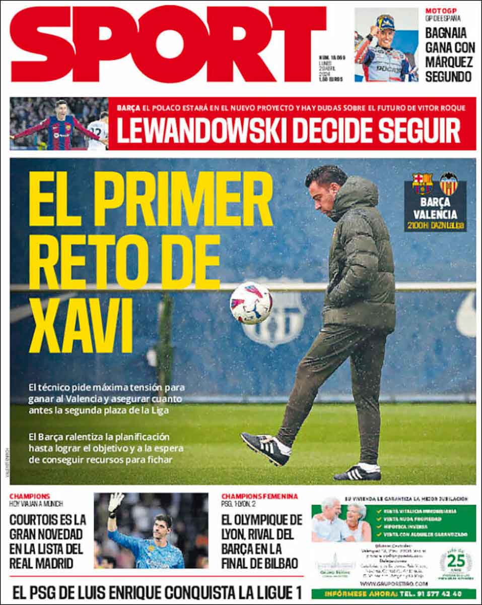 El proceso de colchonerización del Barça va por muy buen camino. Os dejamos con la portada de Sport como prueba auxiliar.