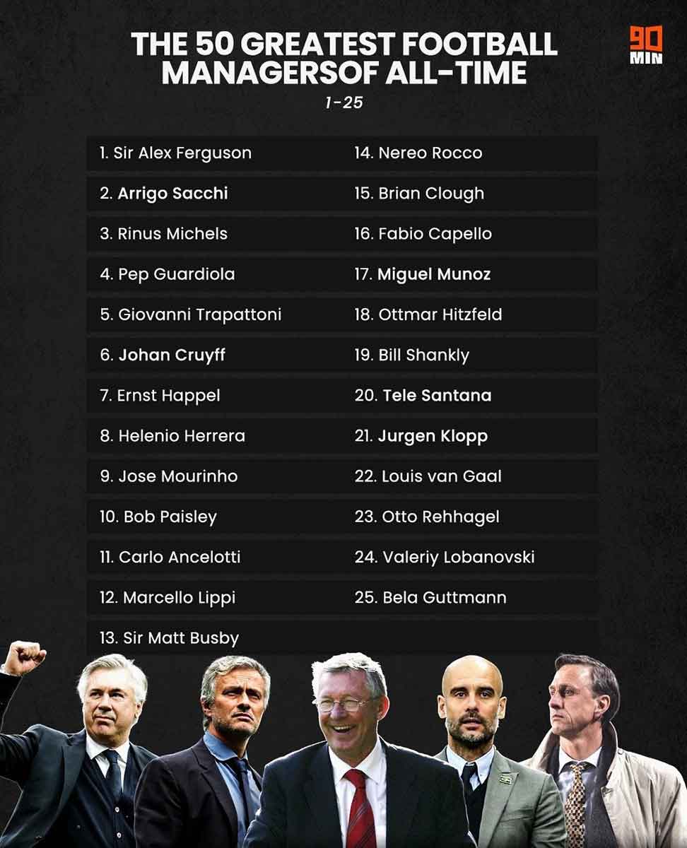 Este asunto nos recuerda una clasificación de los mejores 50 entrenadores de la historia publicada estos días por el medio 90min.com.