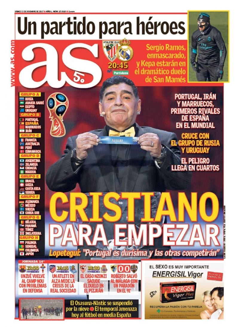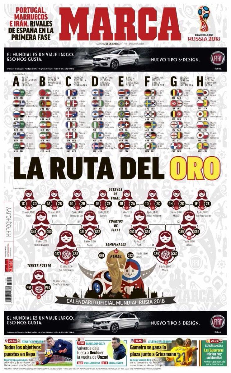 Quién nos iba a decir que la portada más correcta iba a ser la de 'Mundo Deportivo'. Mucho Mundial y un toque casi académico a la jornada futbolística de hoy. Dicen que el Real Madrid no tiene margen de error -y es verdad- y que el Barça busca meter presión. Sin más. Se agradece que, de vez en cuando, haya un medio que no intente hacer malabares con la portada. Y nos vamos ya, que hace mucho frío y tenemos que elegir quién hace la crónica de esta noche con guantes y bufanda.