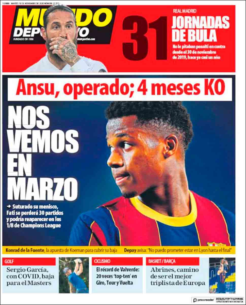 Tanto Sport como Mundo Deportivo destacan que Ansu Fati fue operado y permanecerá cuatro meses de baja aproximadamente.