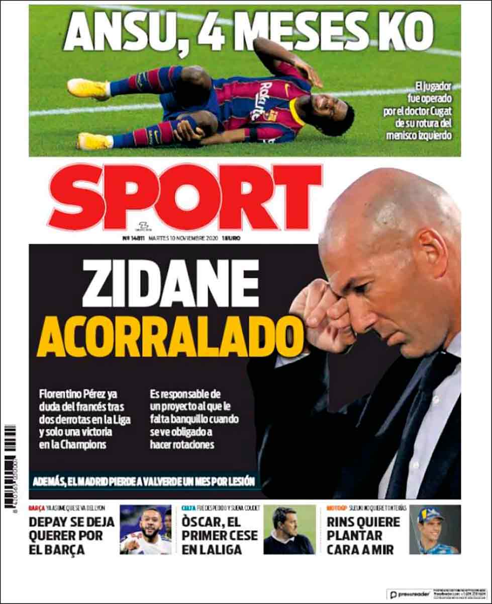 Damos un sorbo al café, apartamos el Mundo Deportivo y aparece la portada de Sport, que más que un diario deportivo parece un videoclub de los años ochenta. “Zidane acorralado” titula (por supuesto con el fondo negro de las ocasiones dramáticas). Acorralado, como la primera parte de Rambo. Y al igual que en la película al bueno de Stallone, a Zidane lo han estado persiguiendo desde antes de poner el pie en el banquillo madridista. La prensa culé es como aquellas autoridades locales que acorralaron a John Rambo. Pero lo que consiguieron fue que el veterano de Vietnam utilizase todo su ingenio y recursos para zafarse.