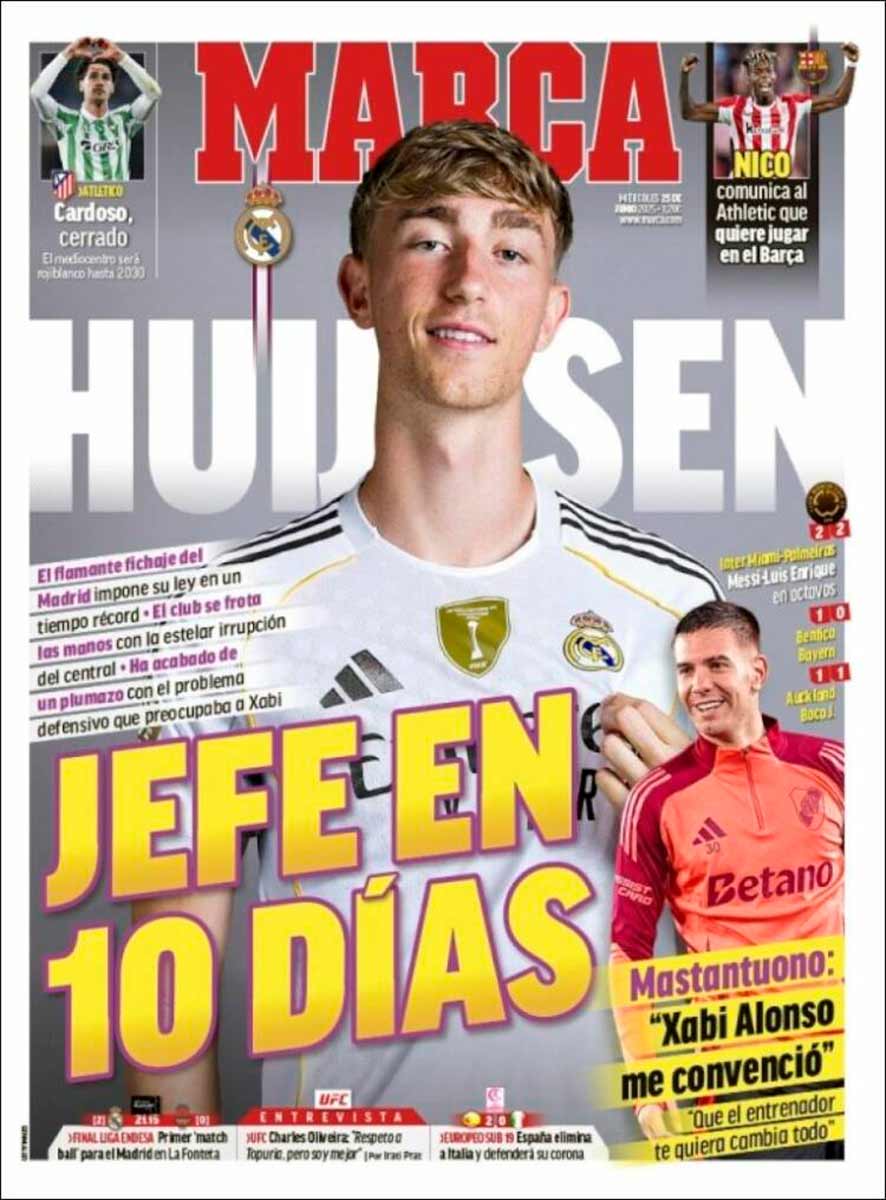 El diario de Gallardo, para despistar, hoy se desmarca —nunca mejor dicho— de su cometido y dedica palabras amables al entorno del Madrid. Sobre Huijsen podéis leer hoy en La Galerna este estupendo artículo de Alberto Espinosa.