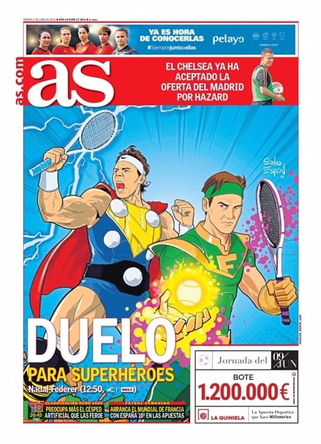 También en As, estamos seguros, hay amplia concienciación sobre la importancia de la llegada de este extraordinario jugador. No se trata sin embargo de un asunto que les preocupe tanto como el partido que hoy disputan Nadal y Federar, como se verá. Es decir: se verá eso y también se verán las ganas quizá excesivas de sorprender a la audiencia con algo nuevo, y ese algo nuevo es un formato cómic. ¿Por qué? No tenemos ni la más remota idea, pero sin duda el nuevo director de As, que ahora mismo no recordamos cómo se llama, ha pensado que se trataba de una idea genial.