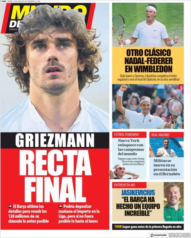 Disfrutad (es un decir) con las cuatro primeras planas del día, y recomendad un dietista a Griezmann, quien desde la portada de su yate acumula los kilos que el Barça no parece capaz de juntar para su cláusula. Que los tome prestados de la cobertura del riñón de su próxima estrella (ver Sport).