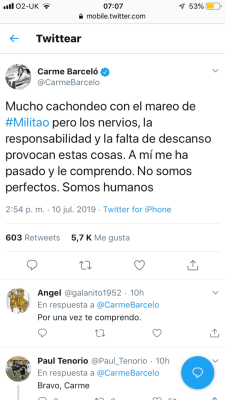 Pues, desgraciadamente , los comentarios , a raíz de la indisposición , fueron los habituales, los normales ( los tenidos por norma ) ... Lo de cristòfol sòria es algo patético. Su anti-madridismo es vitriólico y rancio donde los haya. Al “follacabras”, así le llama “ Toñin el torero” , hace tiempo que lo devoró el personaje.