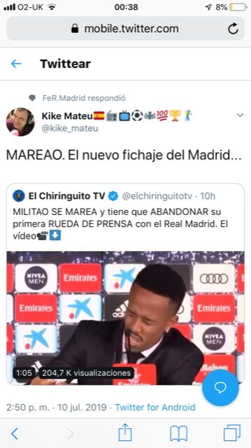 El hecho es que Militão (sea por los nervios, por el calor imperante en Madrid, por el jetlag o por una combinación de todos esos factores) sufrió un amago de vahído en su primera comparecencia ante los medios como madridista. La rueda de prensa tuvo que finiquitarse antes de tiempo y fueron mucho los periodistas y tuiteros que ensayaron unas cuantas bromas al respecto, lo que nos lleva al dilema con el que abríamos este portanálisis: ¿cuánto hay de aceptable y cuánto no en tomarse a rechifla un incidente de este tipo?