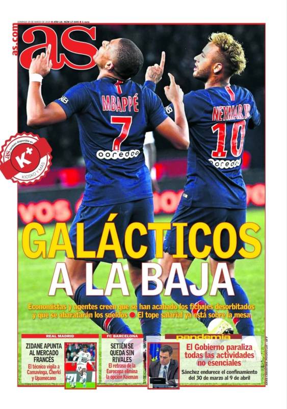 “Galácticos a la baja”, titula sobre una foto de Mbappé y el hijo de Neymar Sr. La simple mención de los “galácticos” nos lleva a tiempos pasados, de principios de siglo, en un titular que tiene algo de oxímoron: ¿se puede estar en la galaxia y a la vez con los pies en la tierra?