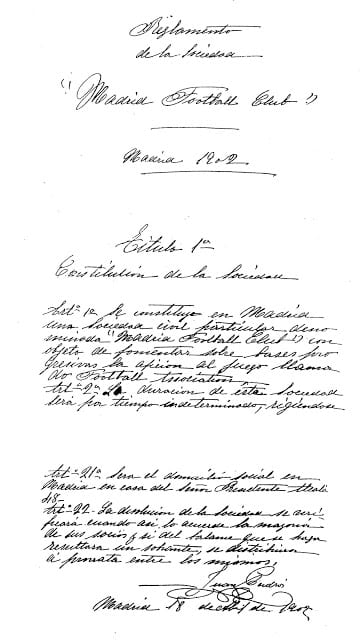 En esta semana se cumplen 117 años de la legalización de los estatutos de la sociedad “Madrid Football Club”, a través del presidente de la entidad, Don Juan Padrós y ejerciendo como autoridad, Don José Sánchez Guerra, a la sazón, Gobernador Civil de Madrid en la época. Comenzaba de forma legalizada la andadura del club más importante de la Historia del deporte mundial.