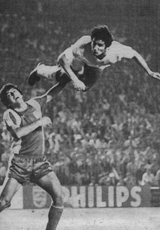 Carlos Alonso Gonzalez ,SANTILLANA ,el de los muelles en las piernas , el de la suspensión aerea , el de la mejor cabeza rematadora del mundo futbol , el goleador indomable , el siempre respetado incluso en el nou camp , el que solo quiso como homenaje que se llenara el estadio en su último partido y lo compensó con una asistencia y un golazo , como no , de cabeza , el de un solo riñón y dos guebos bien puestos , sencillamente : SANTILLANA . a sus pies , caballero .