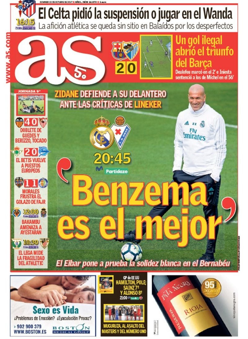Cómo será la situación que hasta Relaño le hace un hueco en su portada. "Un gol ilegal abrió el triunfo del Barça", apunta. El periódico que durante tantos años vivió del 'Villarato' y que luego se olvidó de él porque atizar al Real Madrid era más importante vuelve por sus fueros impulsado por la obligación moral del que sabe que está pasando algo gordo. Será algo puntual, lo sabemos, pero ahí queda, para la hemeroteca.