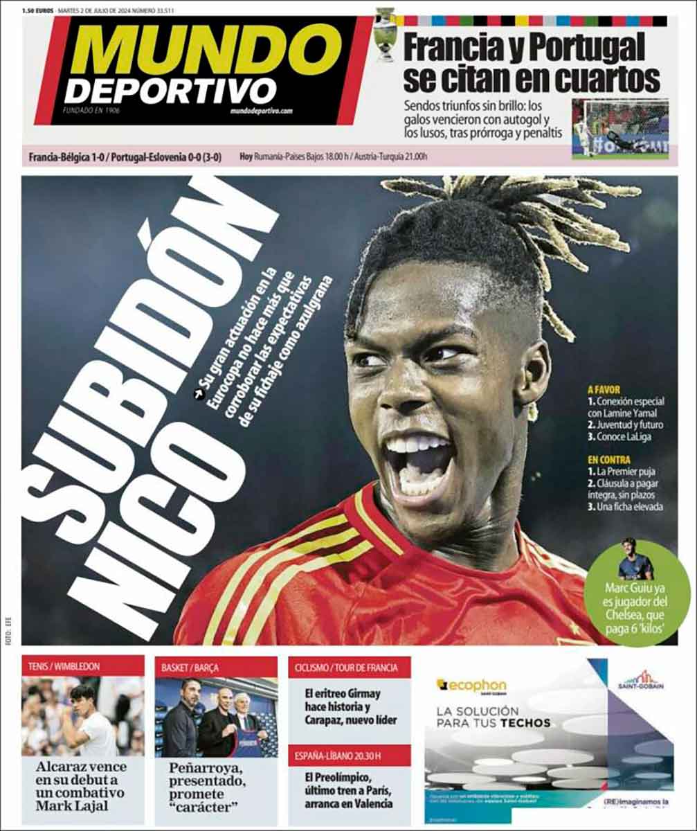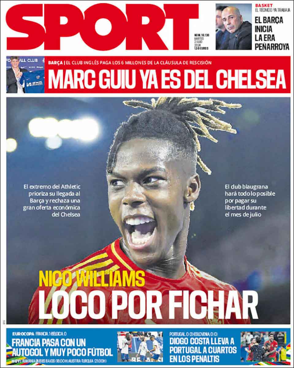 La prensa del FC Barcelona publica dos periódicos que en realidad no son dos sino uno. Mundo Deportivo y Sport son la misma portada con algunas diferencias: Nico Williams y las pajas mentales que se hacen con su fichaje. Aunque visto los planes del Gobierno de implementar una cartilla de racionamiento para el porno, quizá deban deponer su actitud.