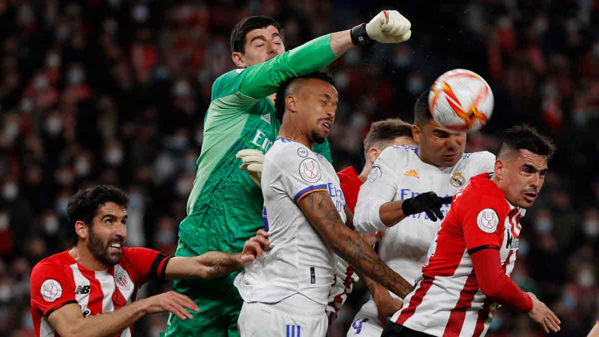 Los leones son un conjunto sólido que defiende bien en estático o en transiciones. El tridente de internacionales españoles formado por Unai Simón en portería y Yeray-Iñigo en el centro de la zaga es el que marca el nivel competitivo del cuadro vasco. Por ello, las dos bajas de los centrales suponen todo un problema para el Athletic. Sus sustitutos no tienen la experiencia de los ausentes, aunque Vivian ya acumula partidos en Primera y tendrá que ser el líder con Paredes como lugarteniente. Si hay un día que hubiesen elegido para no contar con su pareja titular desde luego no sería ante el Real Madrid. El Athletic lleva una media de un gol encajado por encuentro, con unas cifras de 17 partidos y 17 dianas recibidas. Valverde ha creado un equipo que defiende de forma eficiente en bloque medio o medio-bajo, que no deja espacios entre líneas y que presiona a los poseedores de balón para que no giren ni den la vuelta. En el lateral derecho se pueden encontrar más resquicios con un De Marcos que ya no tiene el nivel de antaño y al que Vinicius puede causar muchos problemas. Además, meter centros por arriba al área no será una solución porque pese a que no estarán Iñigo ni Yeray, sus compañeros se defienden bien por arriba con Vivian, que mide 184 cm, y Paredes, 187cm.