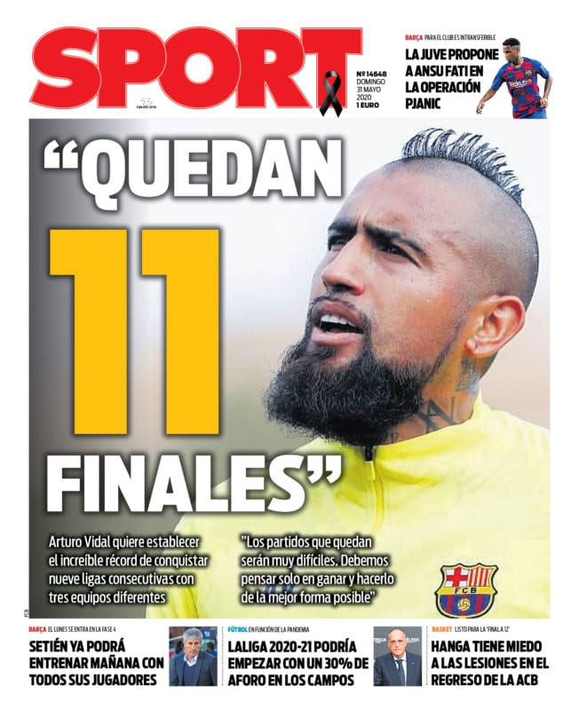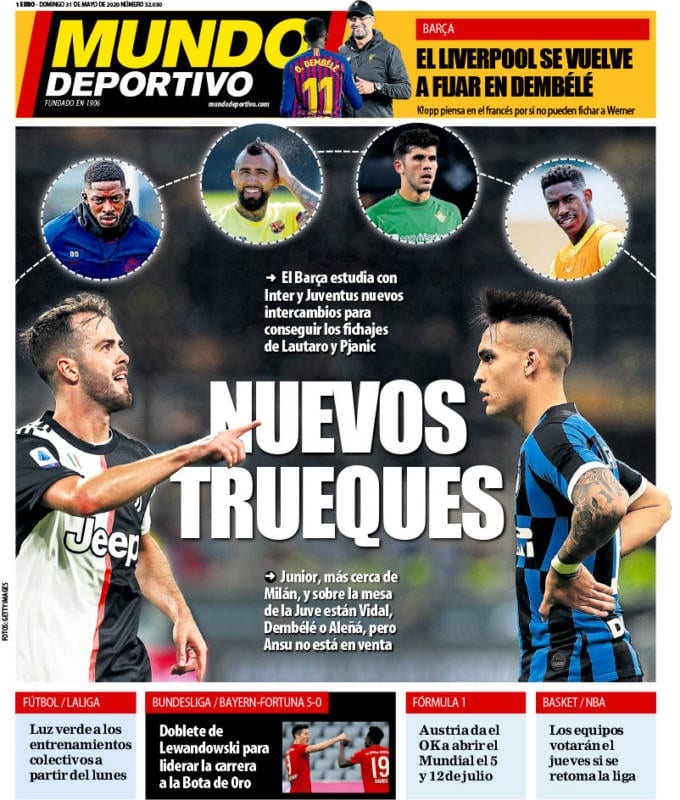 Buenos días. Ni rastro de Lautaro en la portada de Sport. Ahora parecen haber puesto sus ojitos sólo en Pjanic. En Sport tienen la volubilidad de un sultán, y, a juzgar por el baile de jugadores, el trueque (el trueque es el baile del verano) no para de sonar. Entrar en una portada de Sport, o de Mundo Deportivo, es como entrar en las estancias de Darío como cuando entró Alejandro Magno y se quedó maravillado del impresionante número de beldades en exposición. Pero no es ni siquiera Pjanic sino Arturo Vidal hoy la preferida. Hemos pasado de lo nuevo a lo viejo. Como anteponer lo seguro, lo plano, a esa ventanita que susurra, casi en confidencia en contraste con el colorido de Vidal, que La Juve mete a Ansu Fati en la operación Pjanic. Y les duele. Se les nota que les duele porque deben de estar pensándoselo.