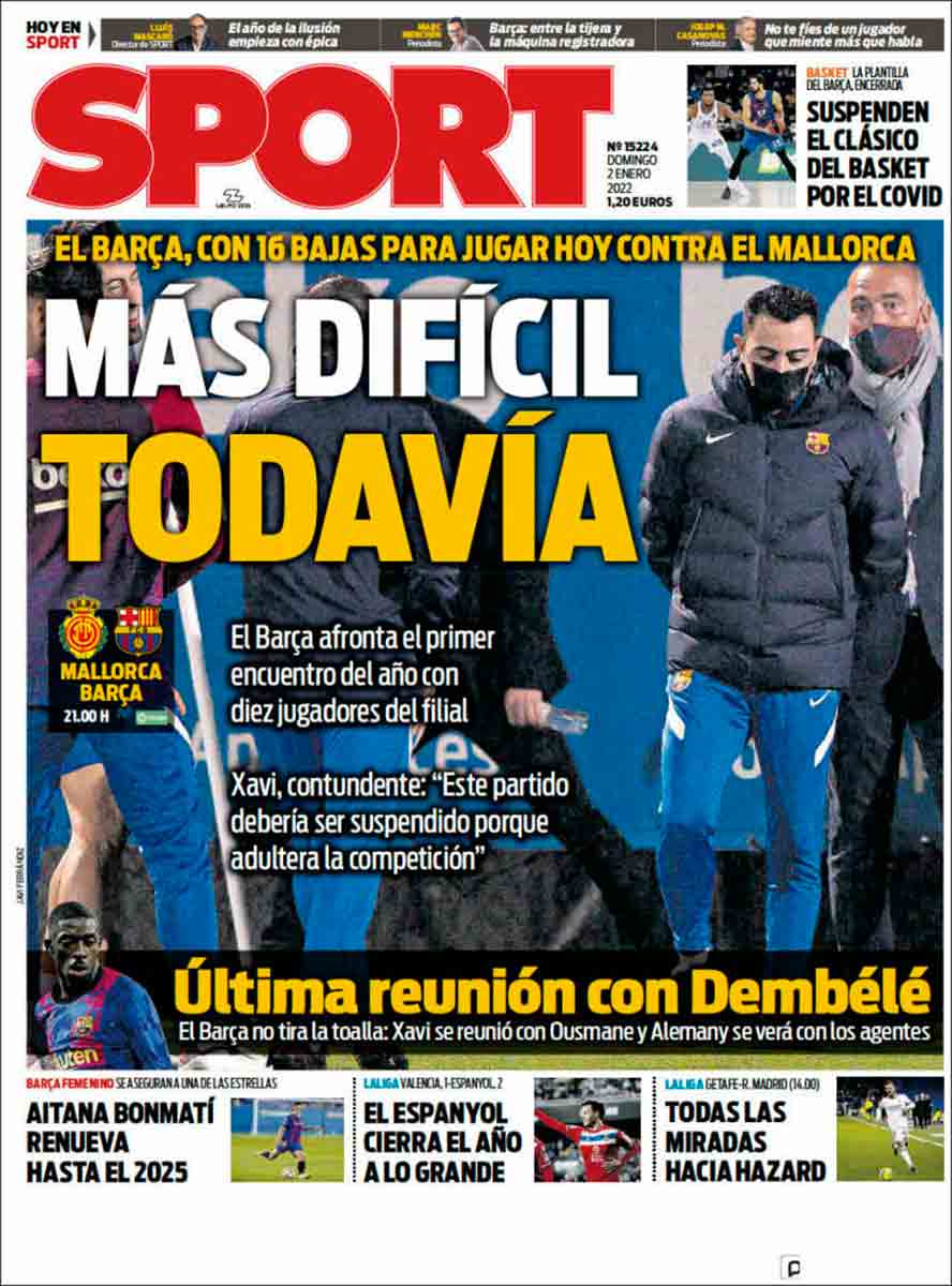 Portada Mundo Deportivo 02-01-22Portada Sport 02-01-22