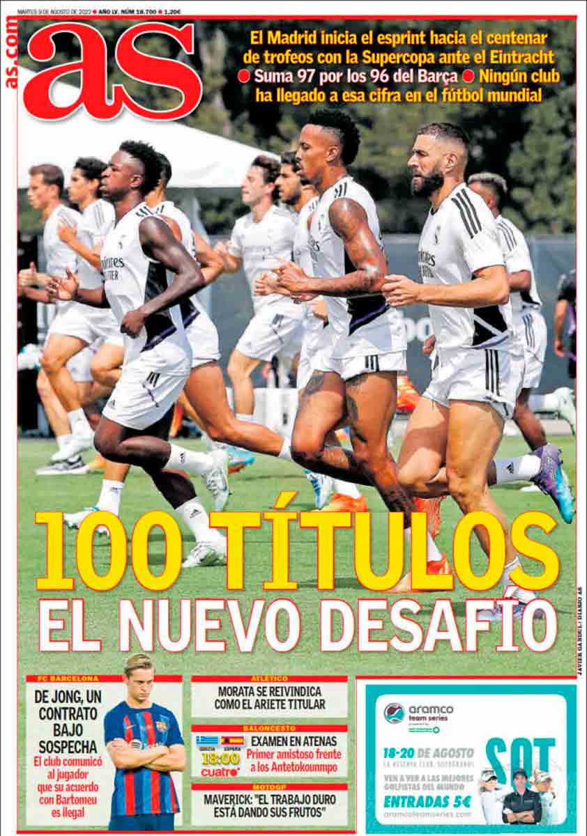 Os dejamos con el resto de las portadas a la espera de lo que nos interesa de verdad, la Supercopa de Europa que disputará mañana el Madrid frente al Eintracht.