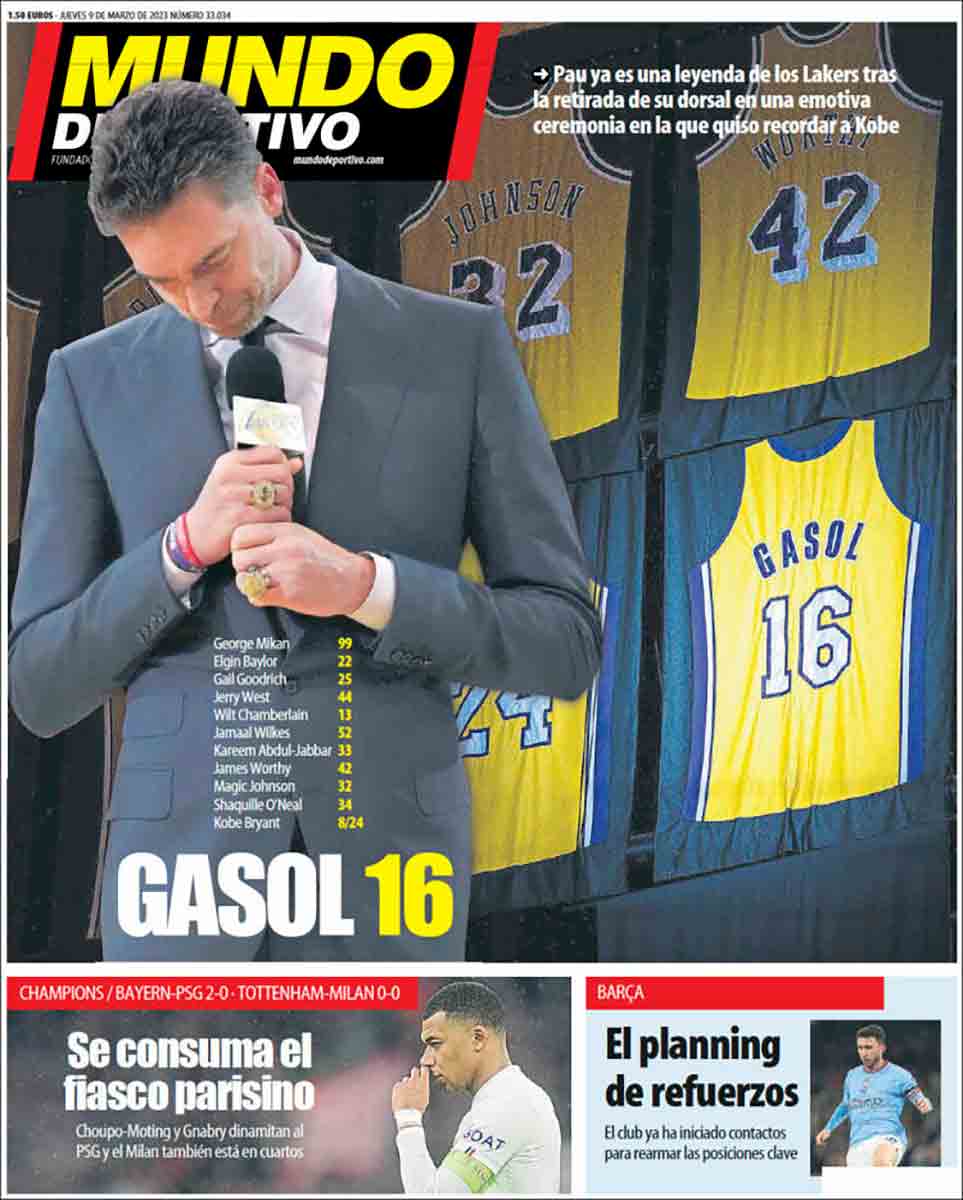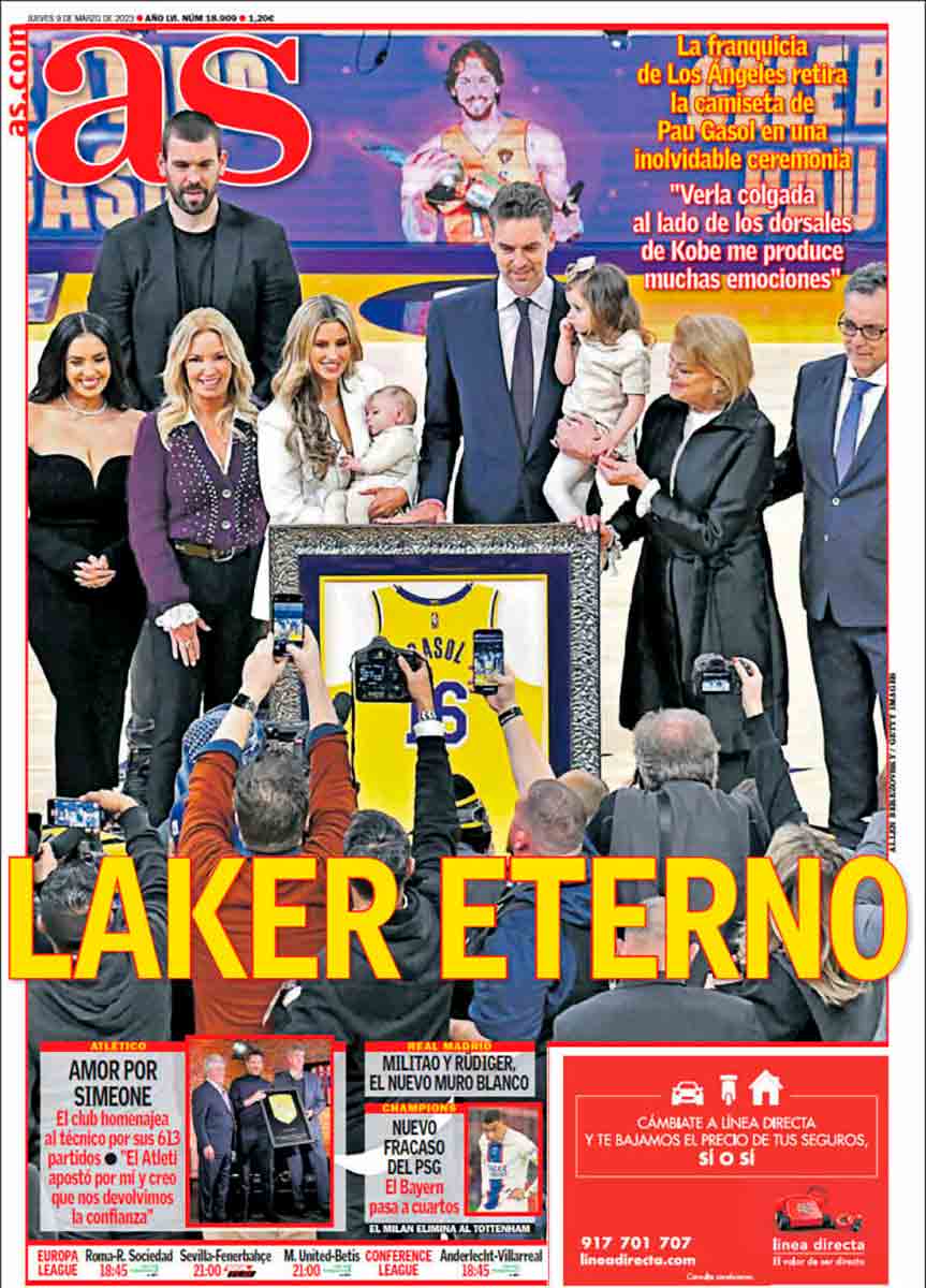 Abandonamos un momento el mundo del hampa para felicitar a Pau Gasol, Los Lakers han retirado su camiseta, homenaje que no ocurre todos los días. De hecho, es el primer español que lo consigue en la NBA. Bravo por él.