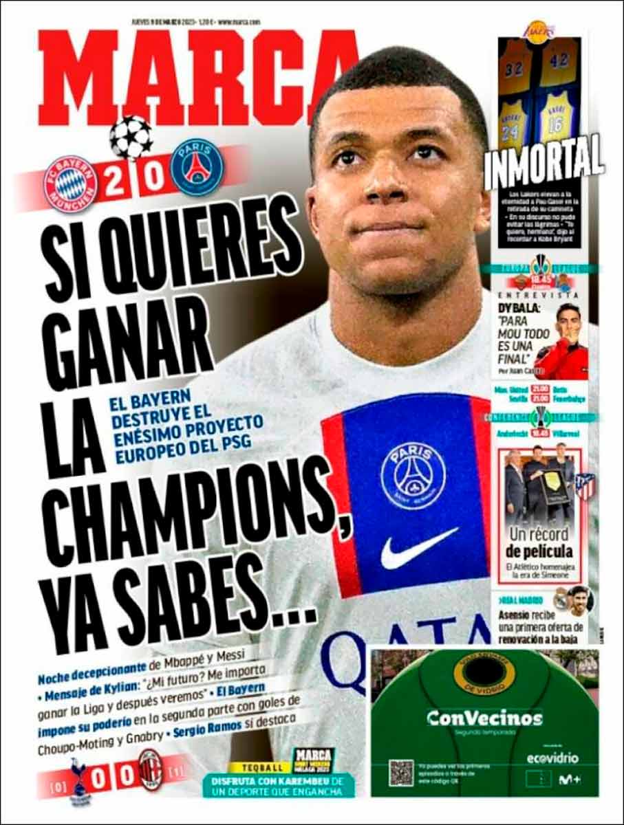 Marca abre con Mbappé, que también pareciera ser quien entona la primera frase de Ansia en Plaza Francia de Calamaro: “Encerrado en mi torre de marfil”. Este año, otro club auténtico, el Bayern, fue el encargado de apear a su conglomerado de estrellas de la Champions.
