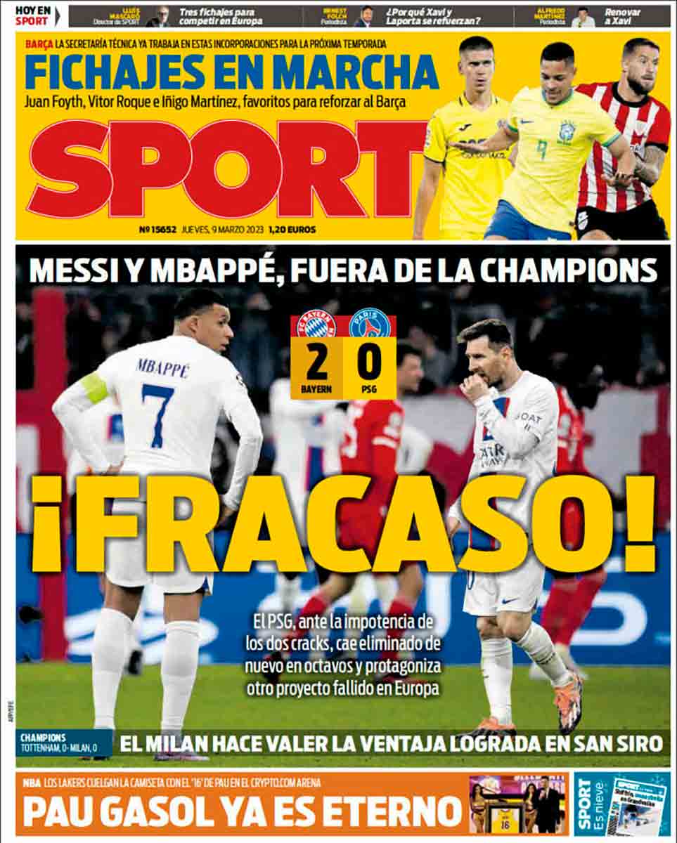 Curioso titular sobre el PSG "Fracaso". ¿entoces el barca, ¿qué? ¿Otra vez cameon de europa? ¿no?