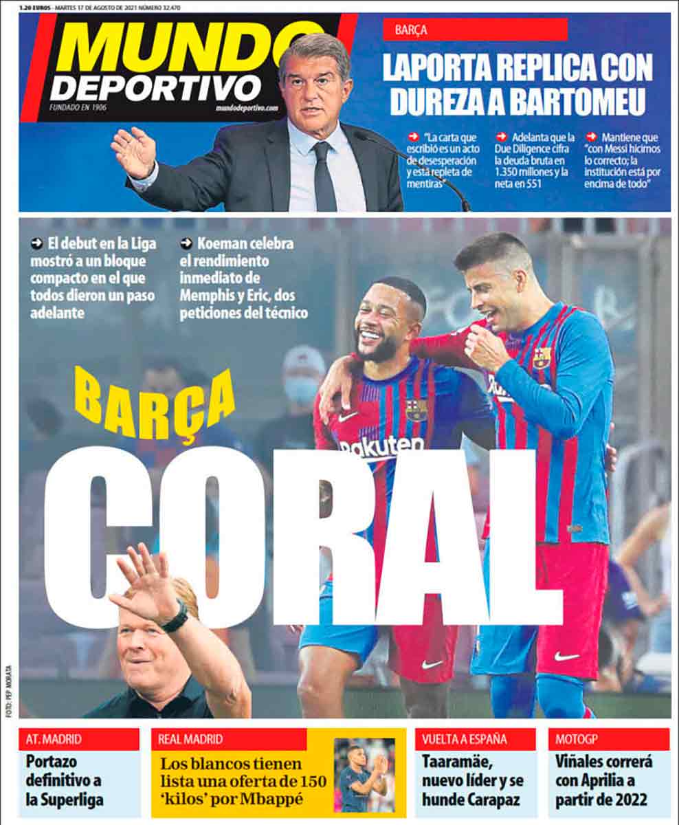 Buenos días. El Barça está en la ruina. No algo nuevo ni lo decimos nosotros, es la consecuencia de una gestión pésima (permitida por los órganos reguladores como la Liga) y lo reconoció ayer su propio presidente. Laporta dijo textualmente —como recoge la portada de Sport—: «Bartomeu ha dejado al Barça en la ruina».