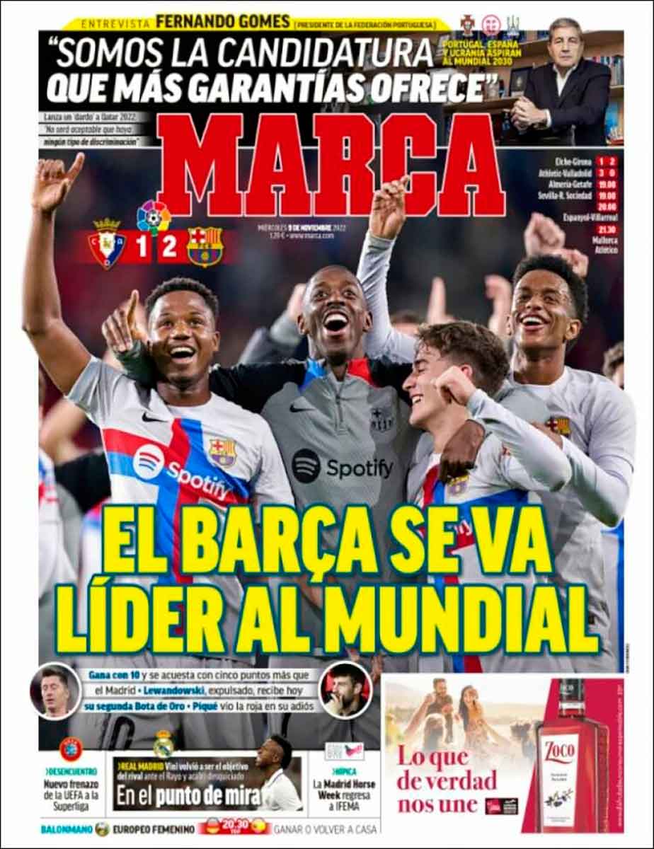 ¿Hemos escrito Liga y Mundial? Perdón, queríamos decir liga y mundial. Las mayúsculas, en este vida, se reservan para las cosas buenas y noticiables. Claro que para Marca, por ejemplo, el logro del Trofeo Precatarí Que Ya No Te vi por parte del Barça (las mayúsculas son sarcásticas) merece honores de portada. Tal cosa sucede porque Marca es el Diario de Todas Las Aficiones. Este, a diferencia del PseudoTorneo Apertura, sí es un título oficial. Se lo concedió a Marca Iván San Antonio el día que le invitaron a las tertulias de su radio como premio a haber escracheado al padre de Martínez Munuera en Benidorm.