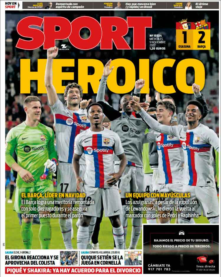 Esta euforia inenarrable que veis en la portada de Marca no es nada si entráis en las redes sociales culés y veis los vídeos. Es como si hubieran ganado siete Copas de Europa del tirón. Bailes, perreos, jolgorio generalizado. Piqué, incluso, se cagó en la puta madre (sic) del colegiado Gil Manzano, dándose así la despedida deseada. Cada uno festeja y se despide del fútbol como lo que es.