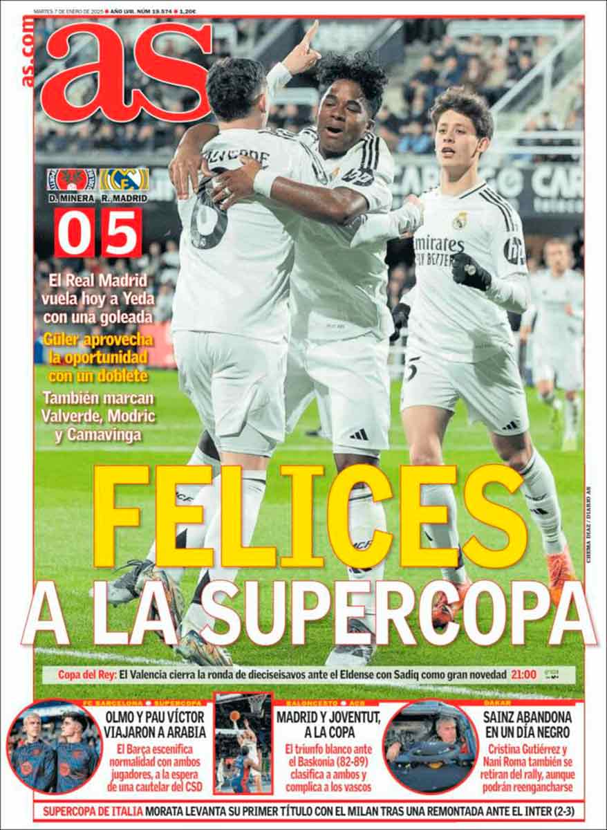 Buenos días, amigos. El ritmo de la competición es tal que no descansa ni en Reyes. Ayer, el Madrid nos obsequió con un partido serio y profesional ante un rival, la Deportiva Minera, muy digno y también serio y profesional, que compitió con deportividad. Los de Carletto vencieron por 0-5 y consiguieron el billete a octavos de Copa del Rey mientras echaban mano al bolsillo para buscar el billete de avión con destino a Arabia.