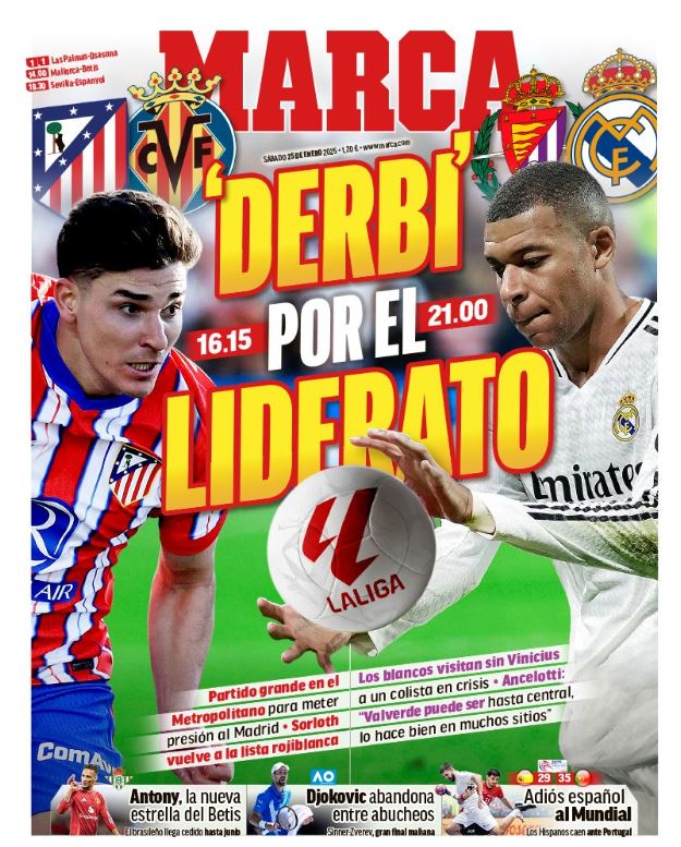 El diario As se saca de la manga una “Operación Pichichi” de la que nadie había leído nada hasta ahora. Quizás porque no exista eso tan pomposo que llaman “Operación”, como si de una maniobra militar o un asalto a un banco se tratara. La noticia nos lleva a la buena racha actual de Kylian Mbappé y nos cuenta que “será el primer lanzador de penaltis”, pese a que Ancelotti dijera en rueda de prensa esta misma semana que será el segundo, tras Vini. Pero qué sabrá Carletto. Quizás se refieran a esta noche concreta de hoy, debido a la ausencia del brasileño, que sigue sancionado por el teatral desplome de Dimitrievski. Nos da lo mismo, ya les ha servido para colar la palabra “penaltis” junto al Real Madrid, mientras que para el Atlético de Madrid, mucho más pequeño, eso sí, “Lo mejor se hace esperar”. El Madrid es el de los muchos penaltis, el Atleti es lo “más mojó” del mundo. Oh, y qué afición, señores, cómo cantan bajo la lluvia.