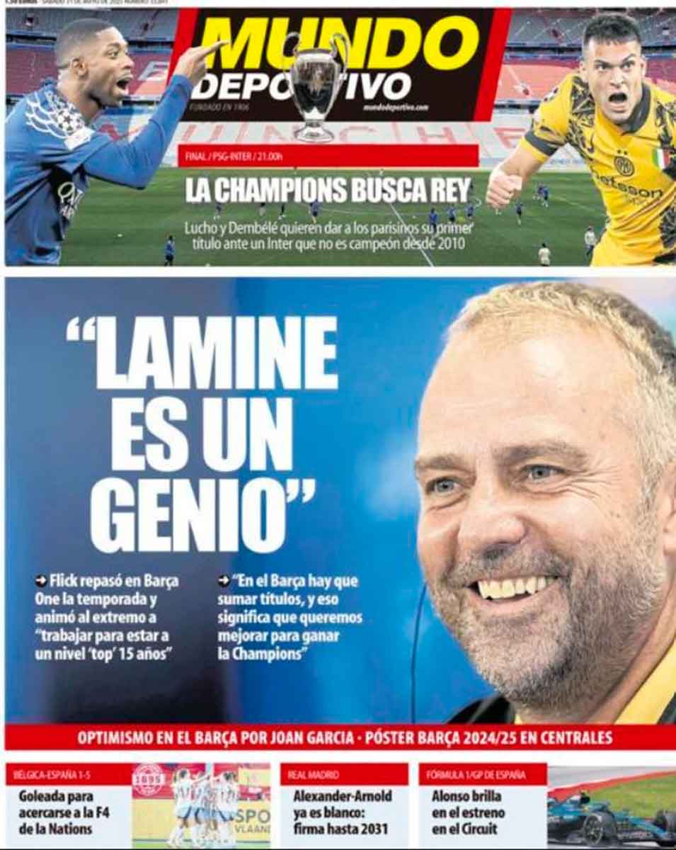 Puede que solo haya algo peor que el careto de Hansi Flick en portada, y es el careto de Hansi Flick sonriente. Ese sargento de hierro que no protesta a los árbitros, excepto cuando se acuerda de sus familiares, y que no critica los horarios, excepto cuando los pone a caldo, aparece en portada para hablar del futuro del club cliente de Negreira, del que espera “un nivel top 15 años”. Las deudas que va a tener que refinanciar el club van a durar mucho más que esos 15 años, pero ya veremos cómo encuentran la fórmula entre Goldman Sachs, la Generalitat y las sucesivas palancas para mantener el nivel, terminar el estadio y construir los puentes de Madison si hace falta.