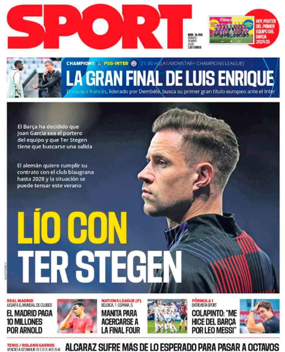 Os dejamos con la portada del diario Sport, que se une a la campaña para animar a Ter Stegen a que deje el club.