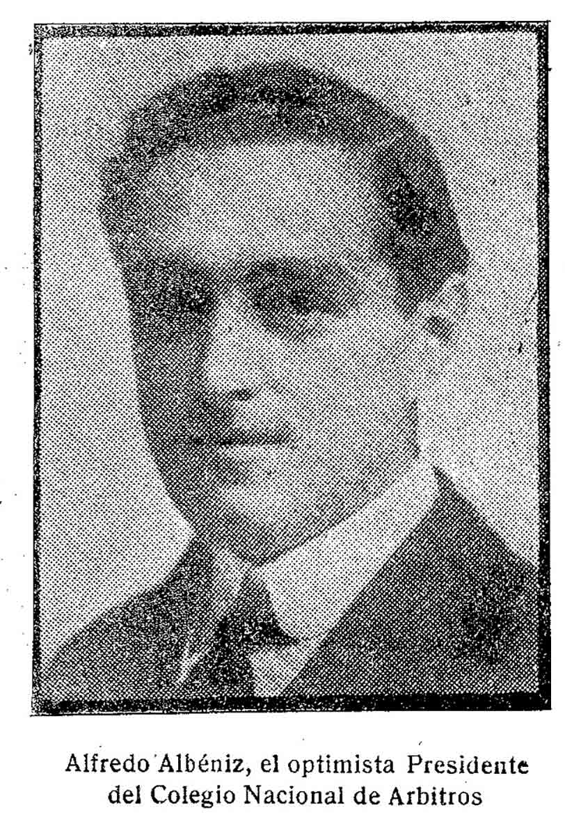 Alfonso Albéniz Jordana fue el primer presidente del Colegio Nacional de Árbitros que se constituyó en junio del año 1917. Albéniz, hijo del famoso compositor de nombre Isaac, jugó cuatro partidos en la temporada 1912-1913 en el Madrid FC y luego fue vocal de la directiva de Pedro Parages. Albéniz inició su carrera futbolística en el Barça y fue el primer futbolista catalán que jugó tanto el equipo azulgrana como el merengue. Permaneció en una primera etapa justo un año como jefe del arbitraje y en aquel momento que no había Liga, pero sí Copa, ganándola aquel curso el Real Unión.