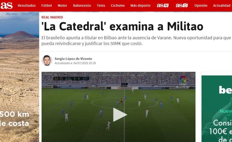 Suponemos que para el diario madrileño Militao pasará un nuevo examen, como tanto les gusta destacar cada vez que el jugador aparece en las alineaciones.