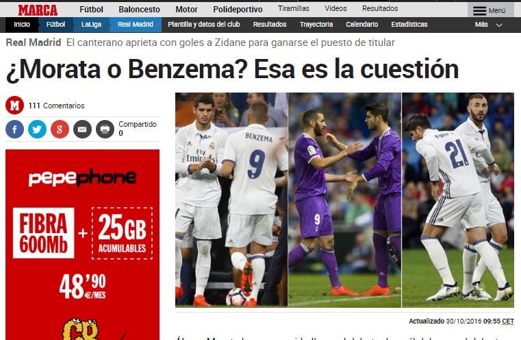 Son debates que envejecen mal, artículos que hoy pueden arrancar cierta sonrisa en los lectores madridistas, como aquellos que se alimentaron entre Fernando Redondo y Luis Milla, o como esos otros que preguntaban si el equipo jugaba mejor sin Cristiano Ronaldo o con él sobre el terreno de juego. Qué cosas, amigos, se ve que en la redacción les gustan las decisiones a cara de perro, A o B, blanco o negro, sin matices (sobre todo en tiempos tan sensibles como los actuales). Como las dos opciones señaladas en la columna de la derecha: Bala o balón, seguramente un reportaje mucho más interesante que los que de modo habitual rellenan las páginas con fichajes imposibles que nunca se concretan.