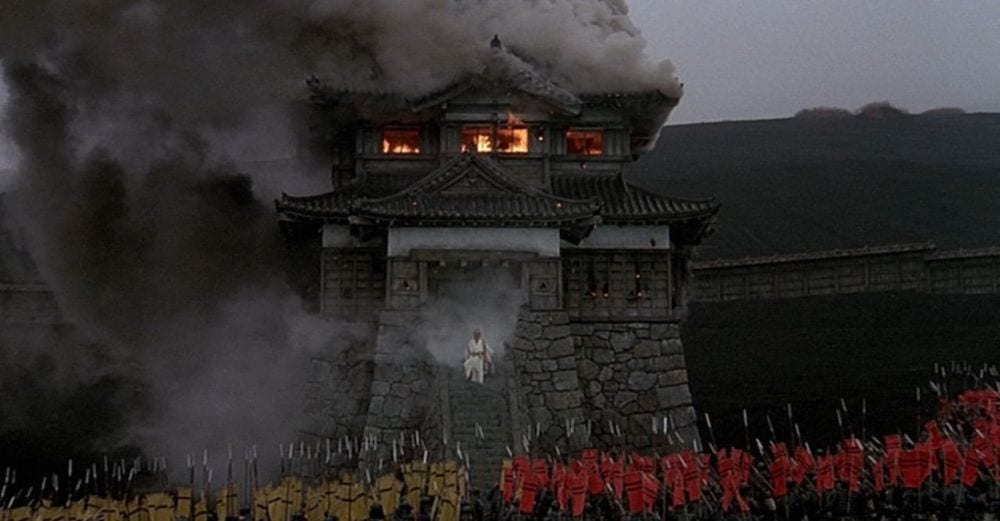 Visualmente, la película de Kurosawa es maravillosa, ya que al asociar un color a cada uno de los hermanos (el amarillo para Taro, el rojo para Jiro y el azul para el más joven, Saburo), más el color blanco propio del patriarca Hidetora, nos encontramos que en cada escena bélica o en las escenas de las negociaciones y de las intrigas, el contraste y la mezcla entre los tres colores, unido a los maravillosos paisajes de la isla nórdica de Hokaido, hace que cada fotograma sea una obra de arte, un lienzo multicolor digno del mejor de los pintores impresionistas.