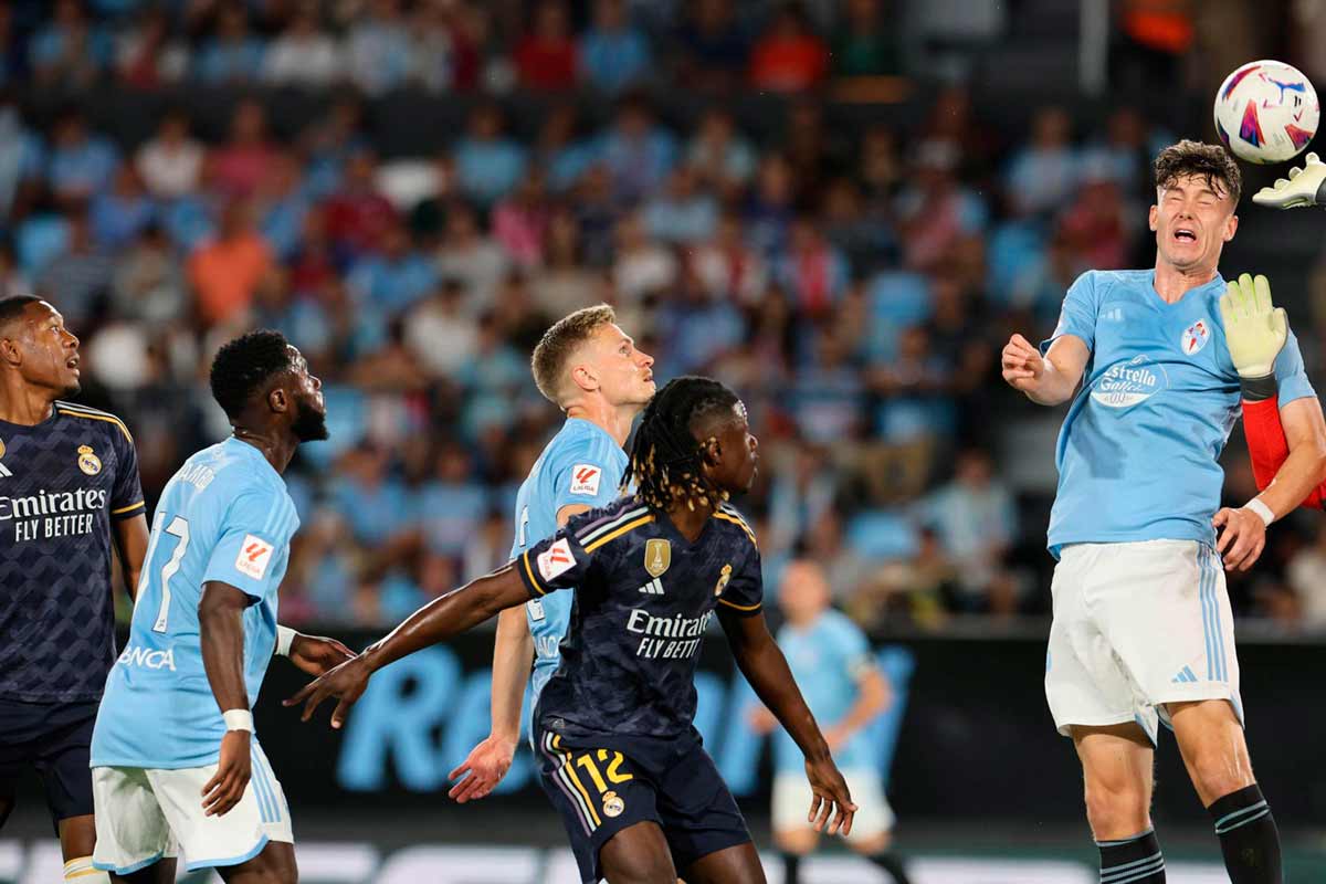 Regresa la Liga tras el segundo parón por las selecciones en lo que va de Liga. El Real Madrid visita Balaidos en una semana importante en la que también tiene un hueso en Europa, con la visita al Borussia Dortmund, y a continuación el choque contra el Barça. El cuadro celeste es una de las sorpresas del curso con el equipo que ha montado Claudio Giráldez, que juega bien al fútbol y compite prácticamente siempre ante cualquier rival. Ante los blancos contarán con la importante baja de su referente Iago Aspas por sanción. También se lo pierde Moriba por el mismo motivo y Luca de la Torre por lesión. En el habitual sistema con tres centrales, dos carrileros, dos medios y tres atacantes, el once del Celta puede ser el siguiente: Guaita en portería; Manquillo, Starfelt y Marcos Alonso en defensa; Mingueza y Hugo Álvarez, Carrileros; Beltrán y Damián en la media; Bamba y Swedberg por detrás del punta Borja Iglesias.