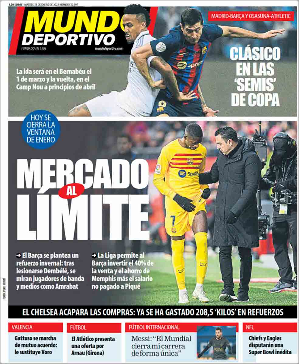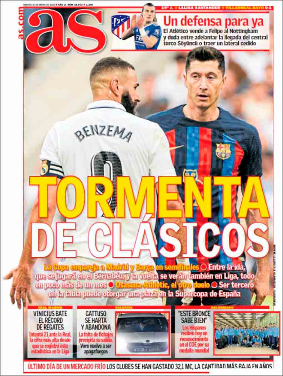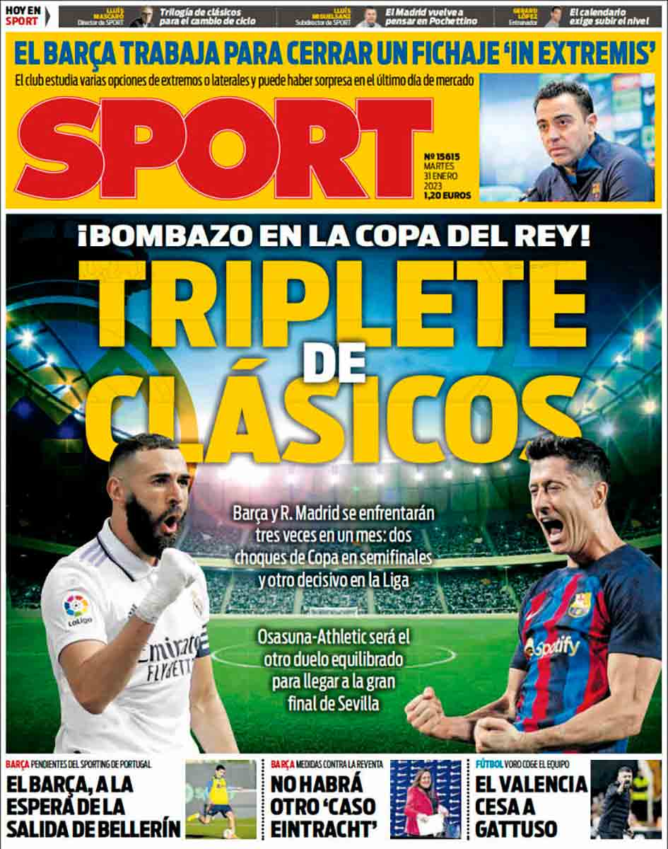 As se inclina por “Tormenta de clásicos”, Mundo Deportivo opta por “Clásico en las ‘semis’ de Copa” y Sport se decide por “Triplete de clásicos”.