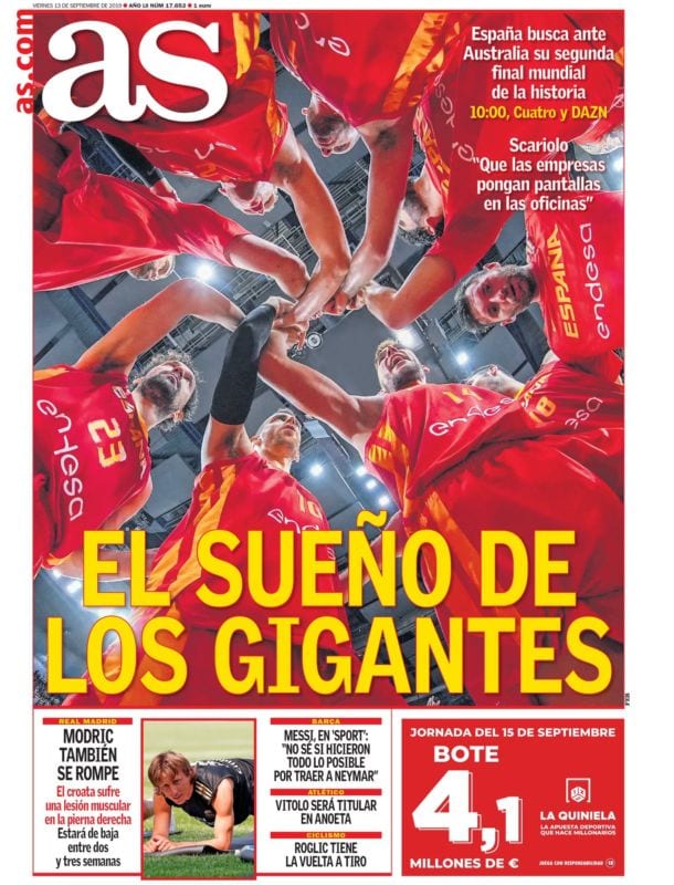 Como comprenderéis, nos restan ahora pocas ganas de seguir comentando las portadas del día. Deseamos todo lo mejor a la selección española de baloncesto.