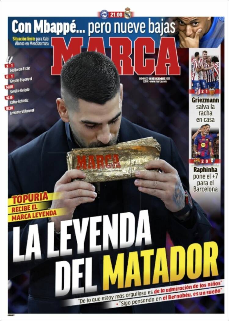 As dice que «Xabi Alonso afronta en Vitoria un nuevo ‘match-ball’ tras las derrotas ante Celta y City». Quizá no sea el mejor encuentro para juzgar al técnico vasco, el Madrid sufre nueve bajas, a pesar de las cuales se presentará al partido y lo disputará, hecho que no siempre ha llevado a cabo el Barça.