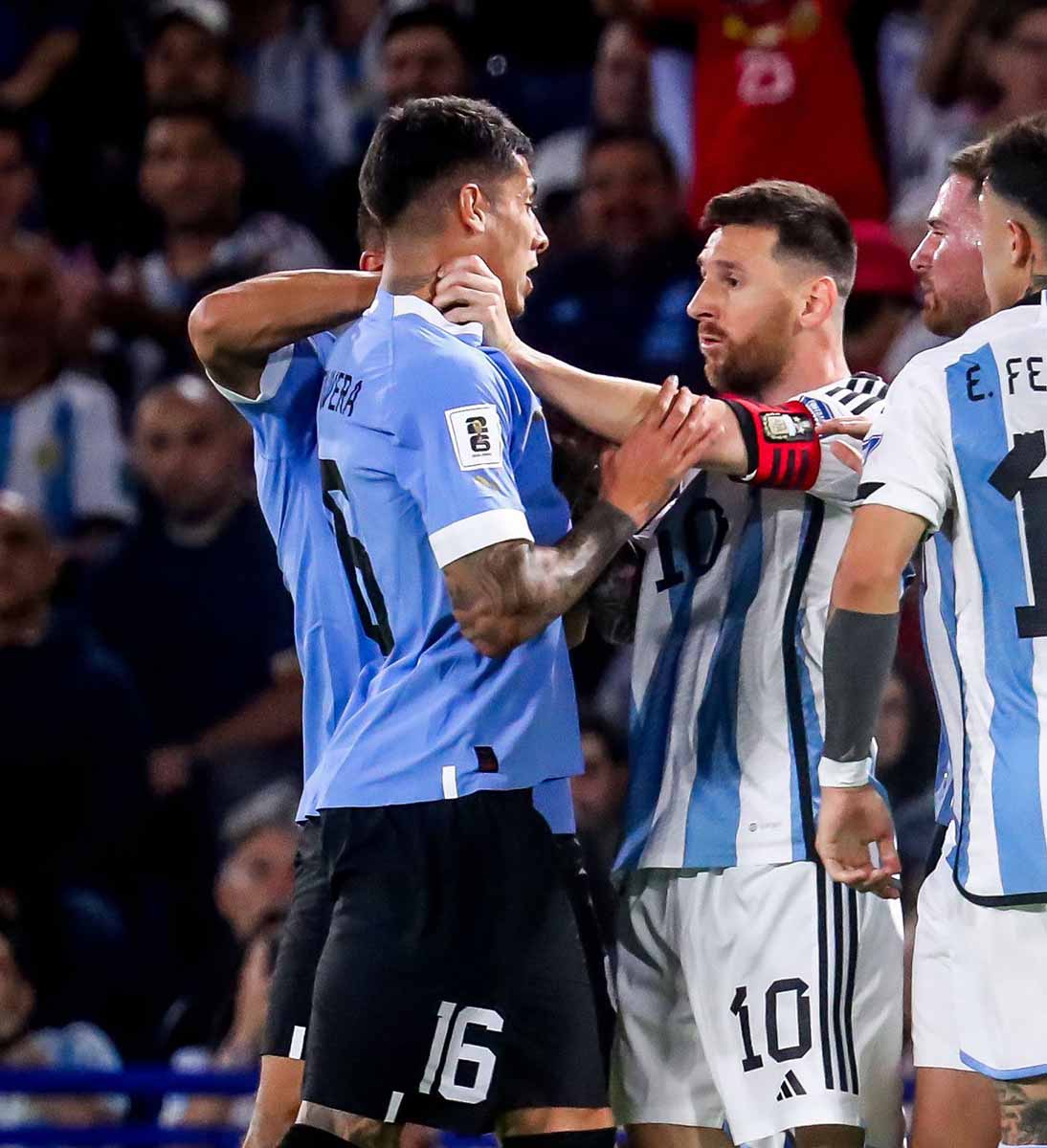 Ante una Argentina en clave Negreira —el arbitraje del colombiano Wilmer Roldán entra de lleno en el concepto de obsceno y cosecha años 90, incluso superando arbitrajes cataríes—, Uruguay no se salió de su postura y ambición a pesar de verse arrinconado todo el partido por inexplicables cobros de falta sucesivos, algunos de ellos incluso otorgados al rival pese a que se saldaron con graves lesiones de futbolistas uruguayos. Pasado el minuto 10 (ay), los campeones del mundo actuales decidieron que ante la atípica falta de control del partido era necesario ensuciar y ‘picar’. Esta vez, querido lector, no fuimos nosotros, por mucha fama que suelen hacernos. Por ahí anduvo, cómo no, un tal Lionel Messi casi desaparecido ayer en una telaraña de la que Valverde fue arte y parte. Anoche, el Balón de Oro quedó reducido a un tiro libre de esos que nunca le faltan que fue al larguero y una serie de tanganas de esas que tanto le interesan a él y a Rodrigo De Paul, su Kevin Costner personal, que ayer además sacó del partido con lágrimas de dolor al extremo Maxi Araujo. Ayer, Messi tomó del cuello a un futbolista de Uruguay y se fajó con otros dos, aunque terminó exigiendo ‘respeto por los mayores’ a los uruguayos con la derrota consumada y ante los micrófonos. Por aquello de los valors; ustedes entenderán.