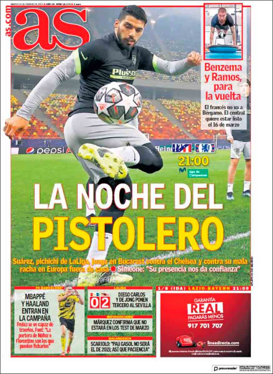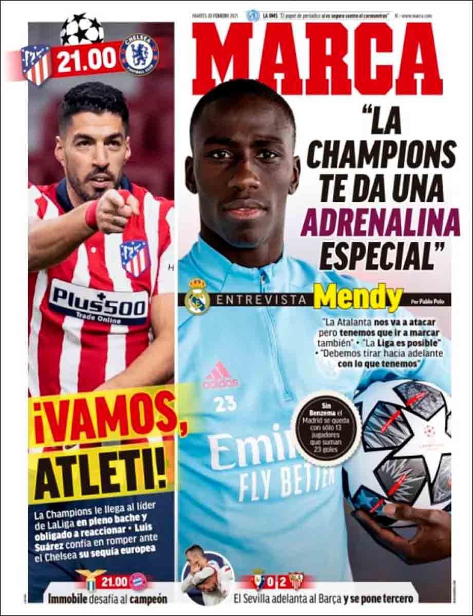Terminamos con Marca, que dedica un tercio al Atleti y dos tercios a Mendy (hablamos de porcentajes, no de cerveza). El lateral (o central) del Real Madrid se ha integrado en la disciplina del equipo y en la naturaleza del club a la perfección; destaca que la Champions da una adrenalina especial y que han de tirar hacia adelante con lo que tienen. Es decir, lo que ha hecho siempre el Real Madrid, tanto en época de vacas flacas, como gordas, como de Setién.