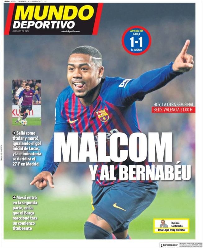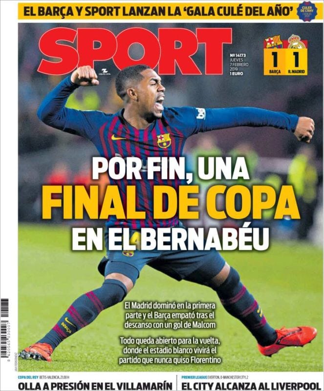 Con todo, la auténtica fumada del día viene hoy a cargo del diario Sport, que mete a Malcom en los baños del Bernabéu para que compruebe por sí mismo si las obras están o no acabadas.