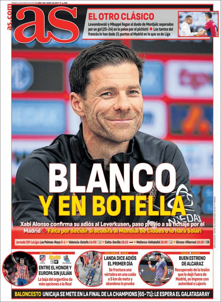 Xabi Alonso anunció ayer oficialmente que abandona el Leverkusen al término de esta campaña, lo que conduce a As a concluir que “blanco y con asas”, o sea, que viene al Madrid. “Blanco y con asas” es un fórmula típica para aludir a una adivinanza de fácil solución. En el caso de Xabi, es blanco por su acreditado madridismo, y las asas solo pueden ser las de la siempre anhelada orejona. Una adivinanza dentro de otra adivinanza. Ambas están chupadas (acertarlas, no ganarlas).