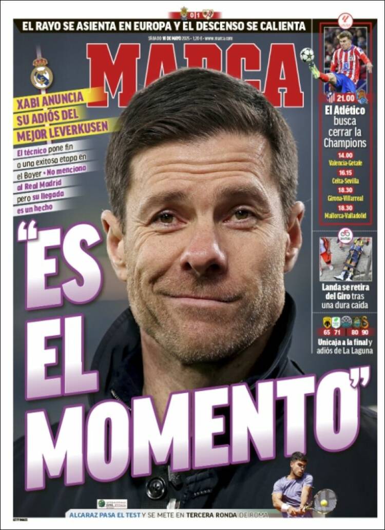 A Marca no parece que le active. Marca está en lo mismo que As, es decir, en el pasado mañana, no en el mañana, no en lo inmediato. Sí, parece que es el momento de Xabi, quien por múltiples razones se antoja una buena candidatura, pero quien debe conducir al Madrid a la victoria en el (mal llamado) clásico de mañana no es Xabi sino Ancelotti.